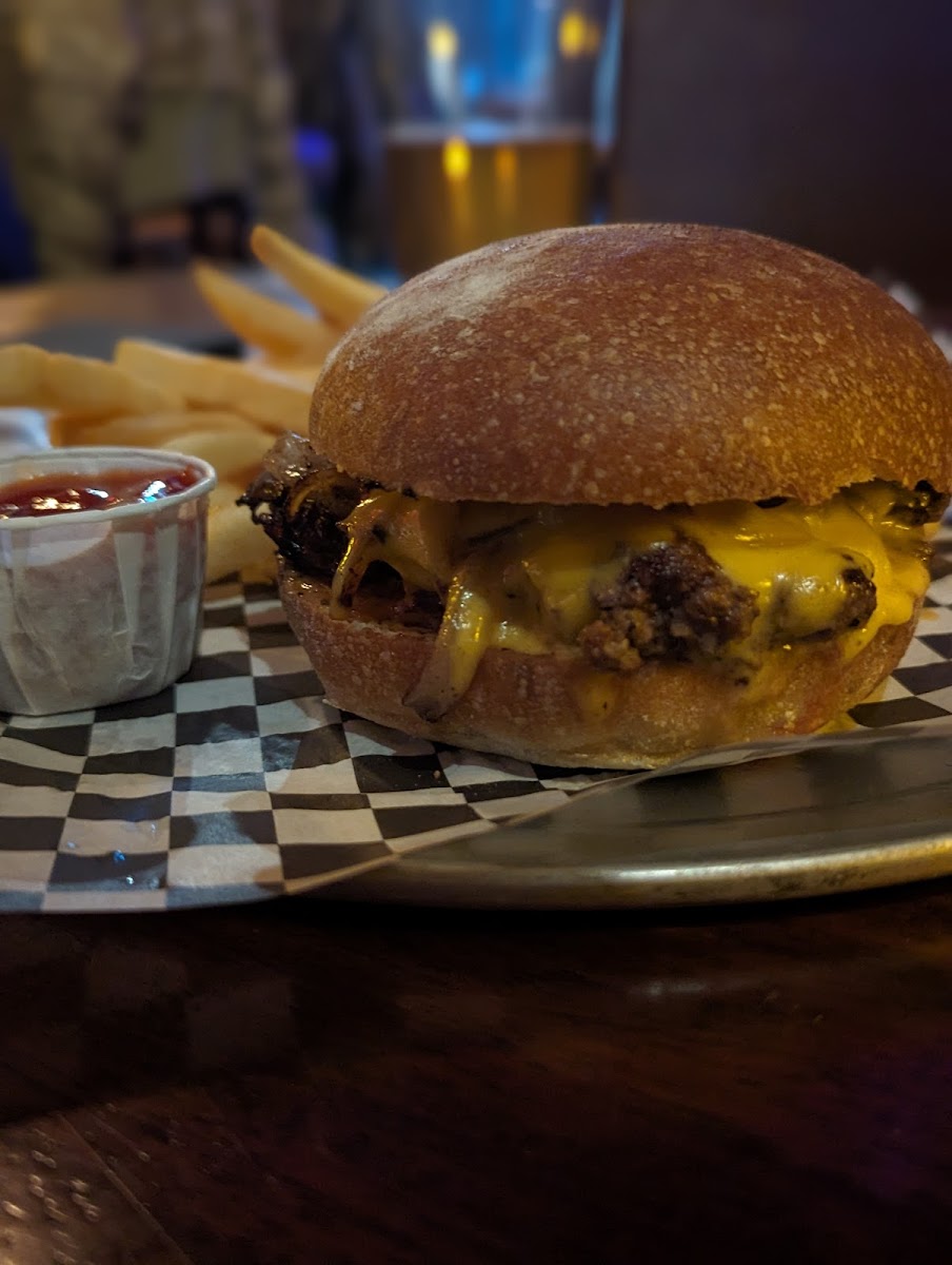 I went here for the first time the other night and it was a nice experience. They have both indoor and outdoor seating. They have a nice food menu, I got their smash burger with fries, and honestly, it was one of the best burgers I have ever tried. I then got a handful of drinks that night. I find this place relatively affordable. I think they mentioned they were going to stop their open mic comedy night, which is sad, but, they had a back room in the bar that was set up for shows. The service was also fast, and they were very welcoming to their guest! 10/10 recommend this place. They had a dark atmosphere but I loved the vibe of the people and the bar itself. I would definitely come back here again.